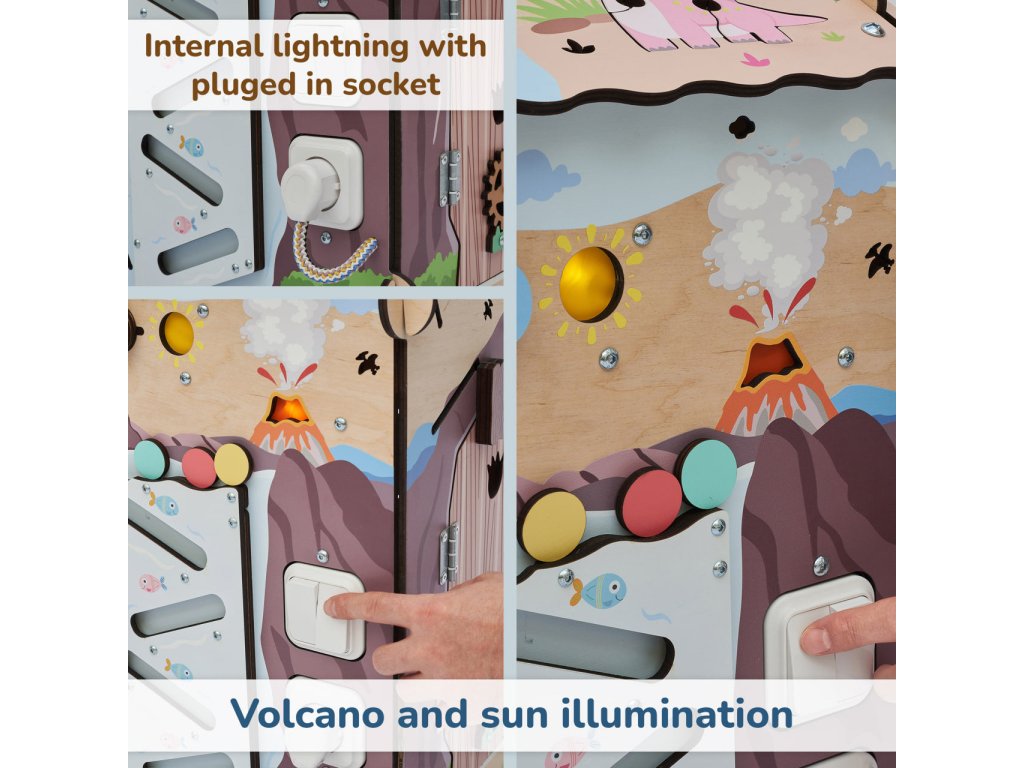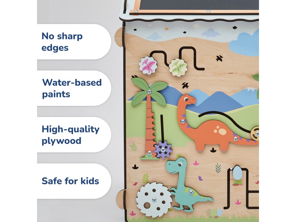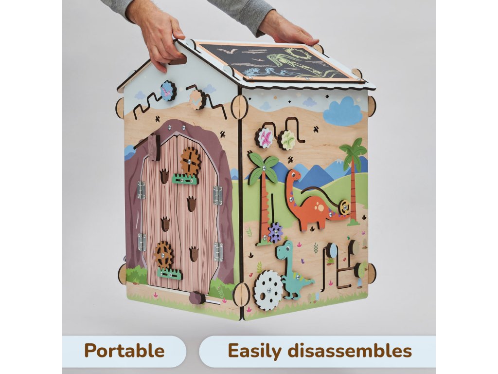 They will learn, have fun, and prepare for practical life. The BusyKids wooden playhouse for children does all this. Thanks to its natural look, it's a favorite among our customers and fits perfectly into any interior. And don't worry, it can also fit into a small apartment. It comes with 6 activity tables.
