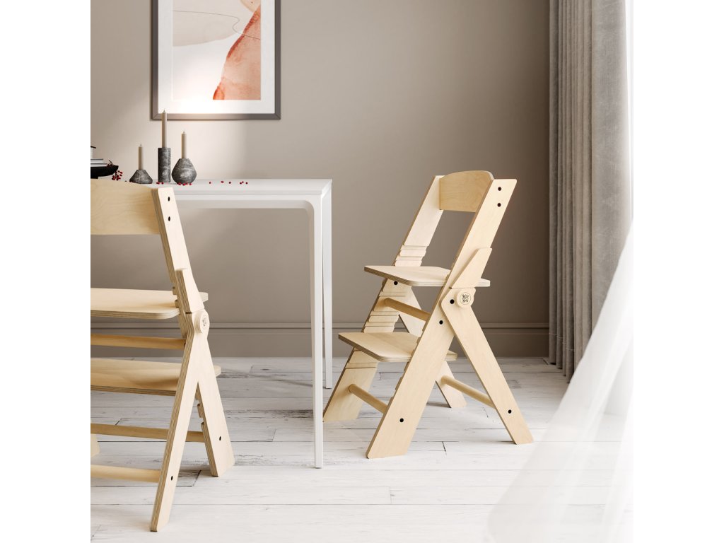 The chair is adjustable in two positions, so it grows with your child and supports a healthy sitting posture. Made from high-quality birch plywood and beech wood, it is carefully sanded, finished with a child-safe water-based varnish, and designed without sharp edges.