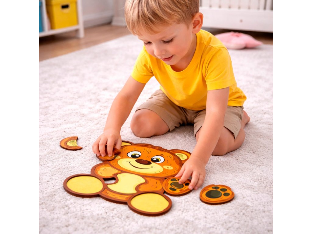 A charming bear-themed puzzle for children aged 4+. It combines fun and learning by developing focus, memory, and fine motor skills—perfect for playtime at home or as a sweet gift.