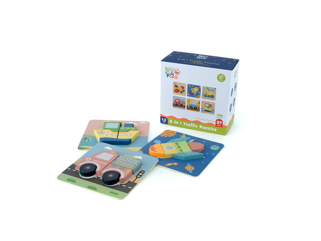 The BusyKids Transport Puzzle Set includes 6 colorful puzzles featuring different types of transportation. It helps children develop fine motor skills, hand-eye coordination, and learn about vehicles while enjoying fun and educational play. Made from safe, high-quality materials and perfect for kids aged 3+.