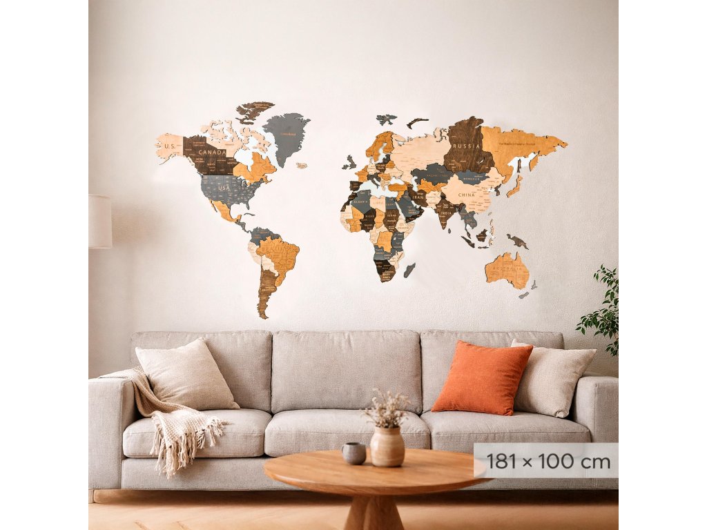 A stylish wooden world map that combines decoration and learning. Helps children explore geography in a fun and engaging way while adding warmth to any room.