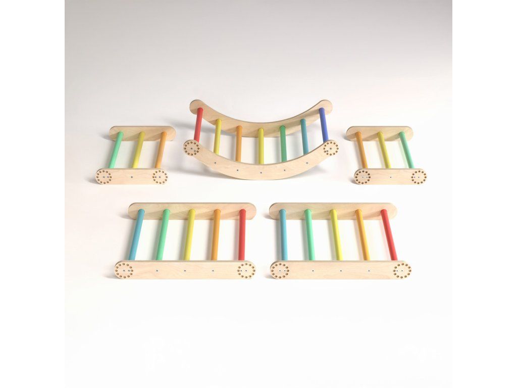 Having your own indoor playground at home is every child's dream. And we have found a way to make it come true. We have invented a large climbing set that you can modify easily and without any tools into more than ten variations. The little ones and those who already like to climb will have fun :)