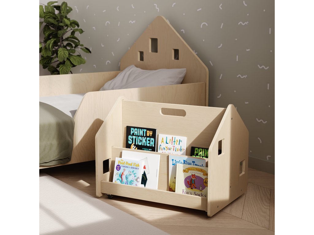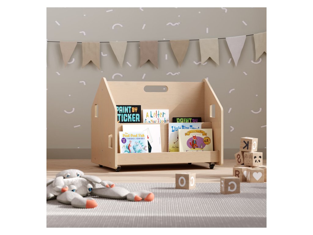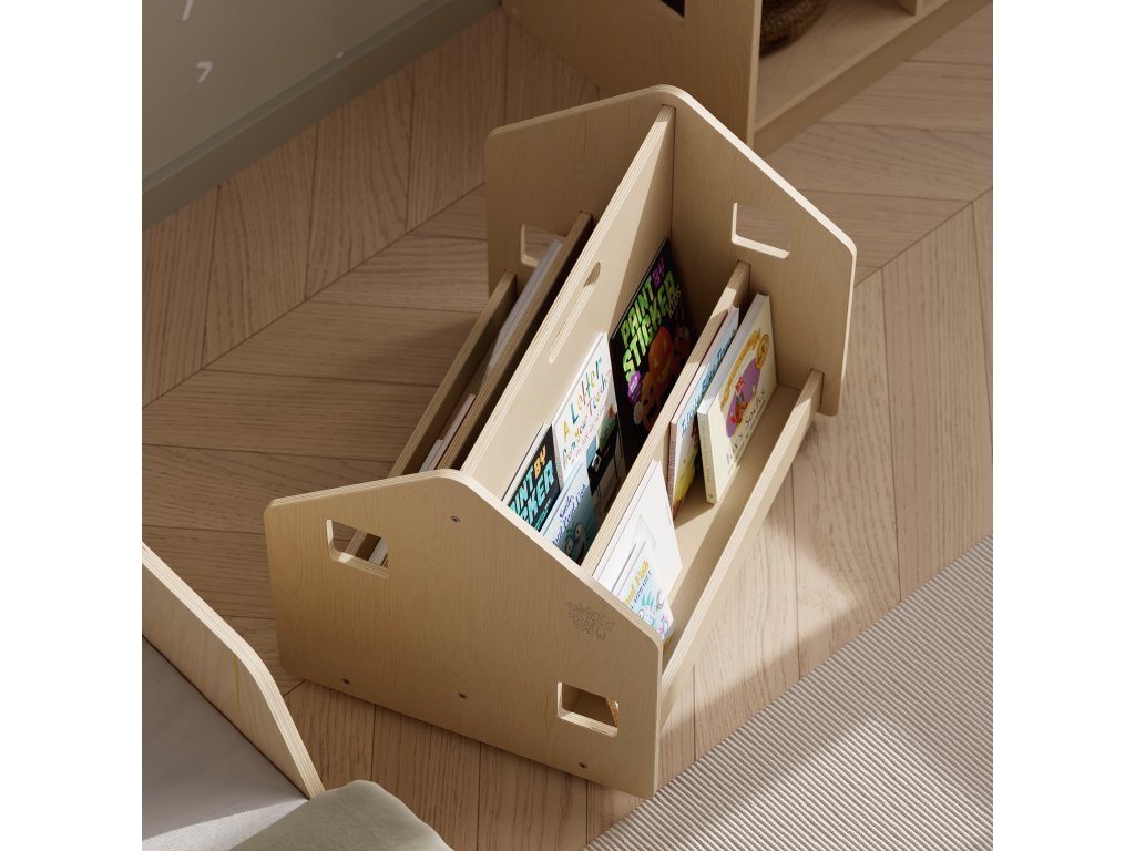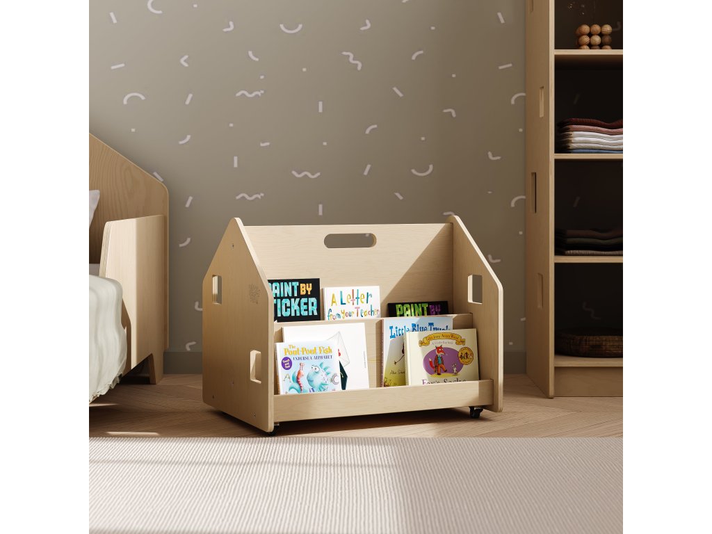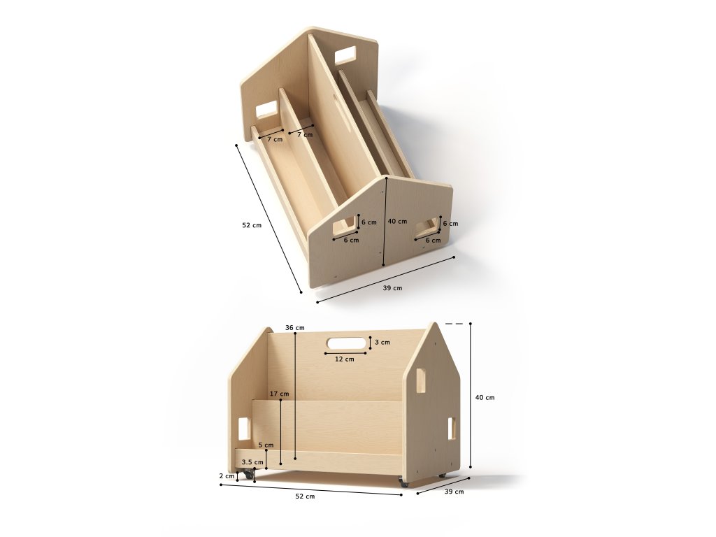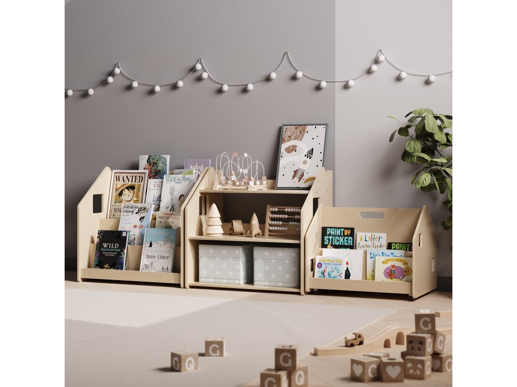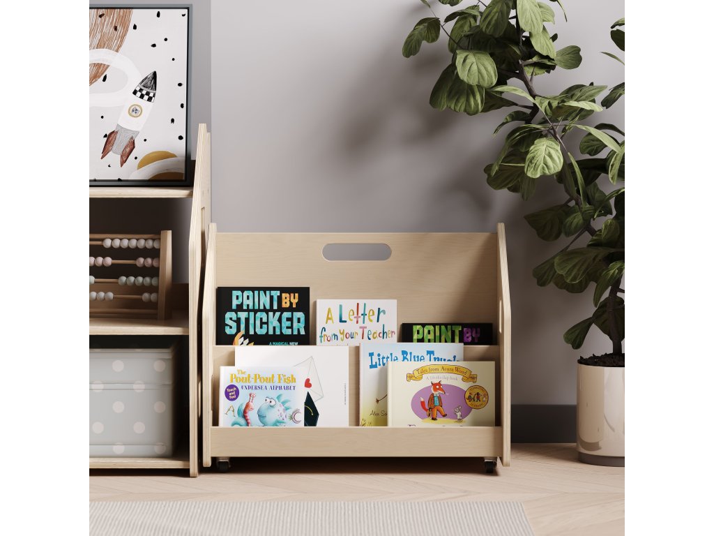 - Double-sided access: children can easily choose books from both sides of the shelf independently, learning to handle books carefully.