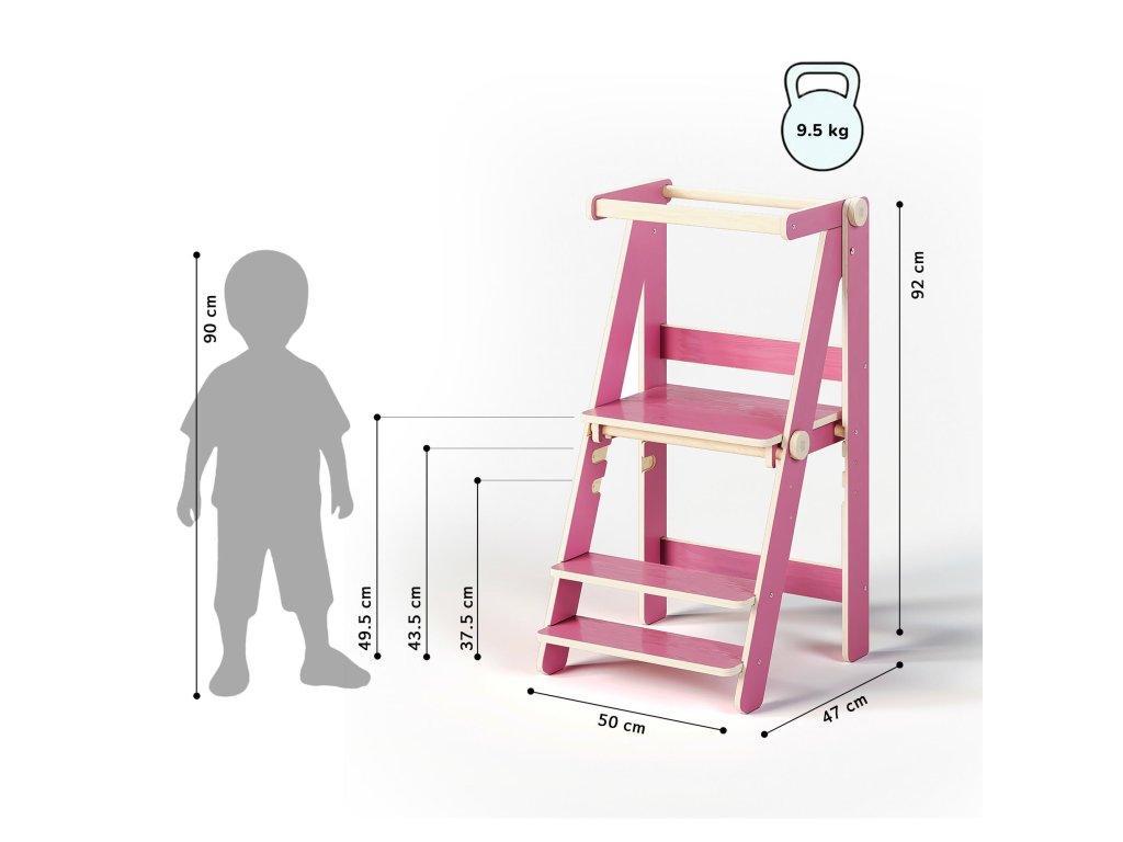 BusyKids Foldable Learning Tower – Pink allows children to safely participate in everyday activities alongside adults. Designed according to Montessori principles, it encourages independence and confidence. The sturdy side panels provide safety, and the foldable design makes it easy to store.