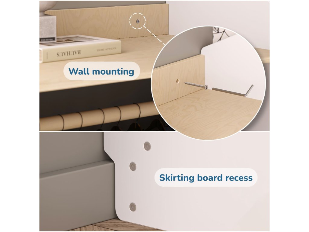 In addition to providing convenient clothing organization, the house-shaped wardrobe adheres to Montessori principles, focusing on independence, active child participation, and development. Each shelf allows open access, enabling the child to easily see and pick their clothes for each day, encouraging them to learn how to organize and responsibly manage their belongings.