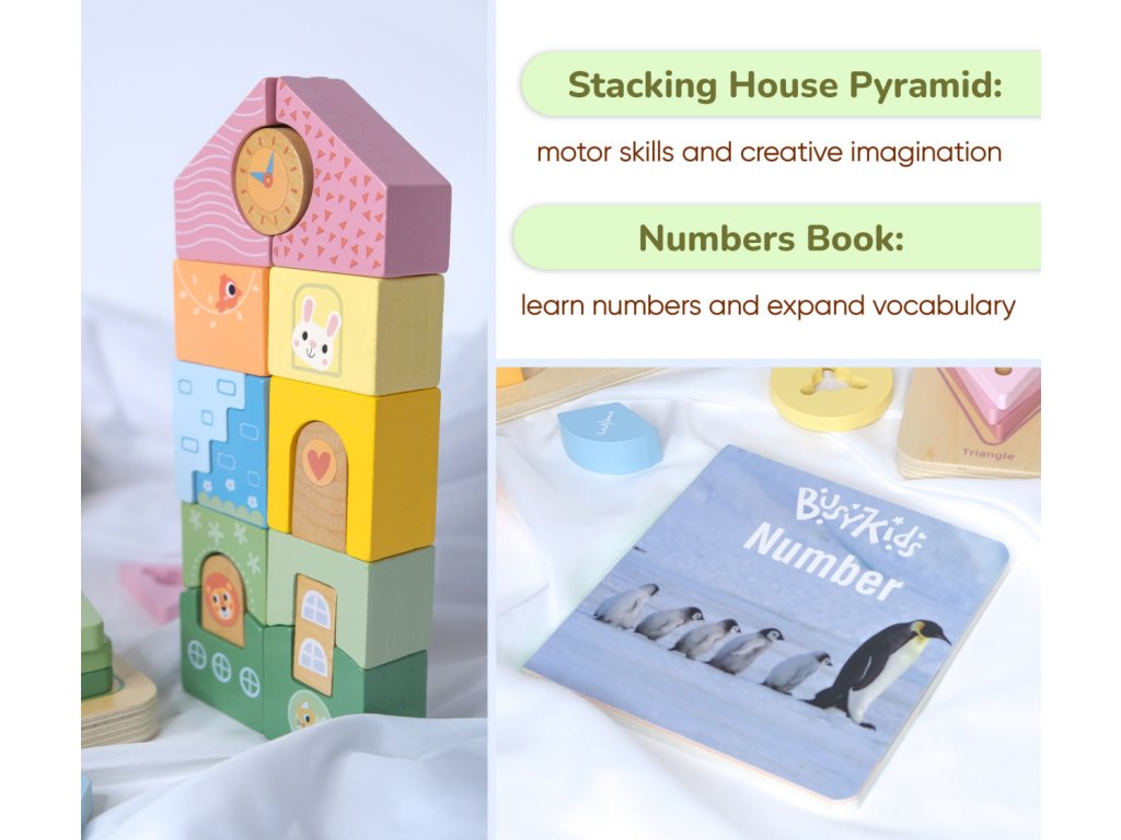 Stacking House Pyramid: Develops sensory and motor skills. Encourages creative imagination and manual dexterity, fostering early architectural thinking.