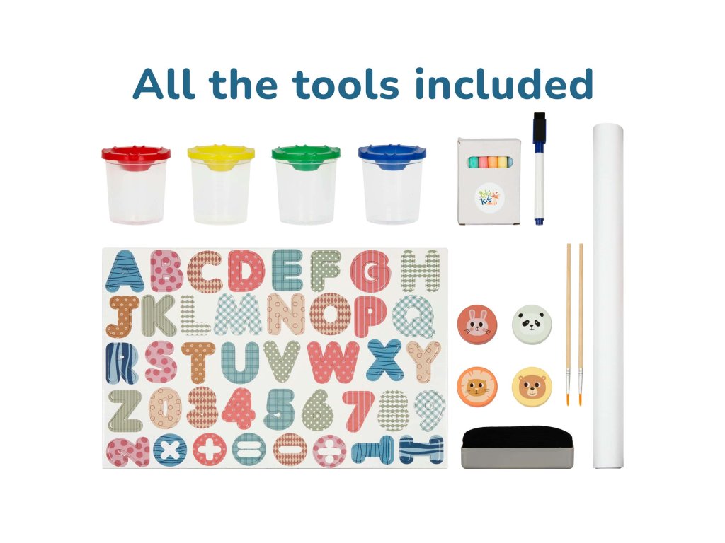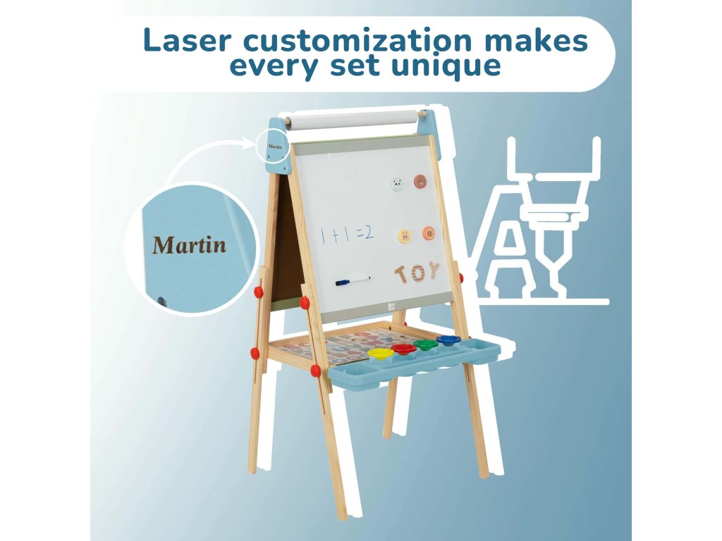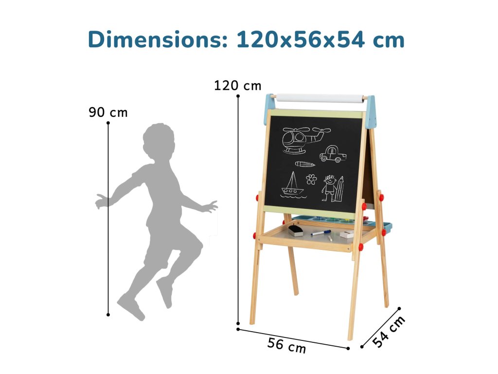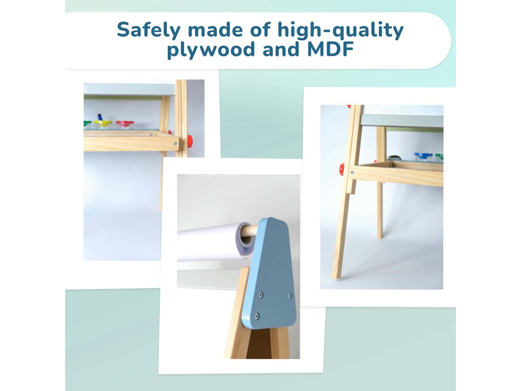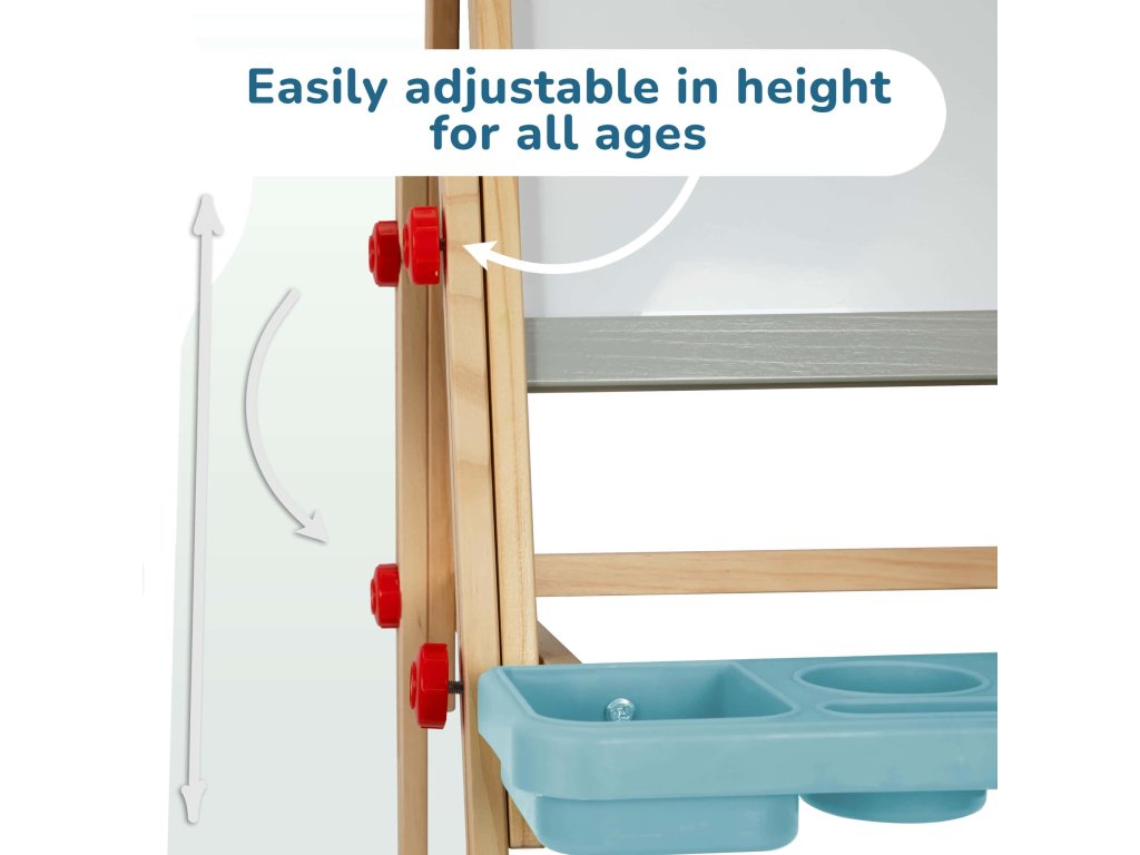 The easel is adjustable in height. All materials are carefully selected and safe for children. It folds easily for convenient storage, making it an ideal tool for developing fine motor skills, imagination, and creativity. Make learning and art exciting and engaging!